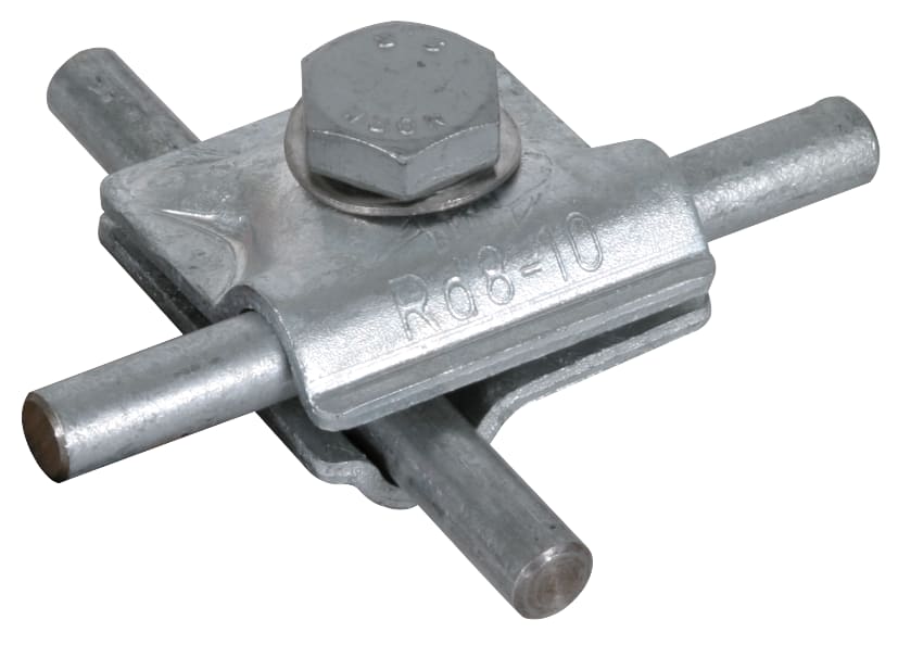 Morsetto di collegamento multiuso secondo CEI EN 62561-1, per l'applicazione universale per connessioni a croce, a "T"e parallele di conduttori tondi. Esecuzione componibile con vite a testa esagonale, grova e filetto nella parte inferiore.
