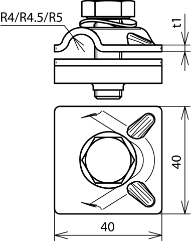 Morsetto di collegamento multiuso secondo CEI EN 62561-1, per l'applicazione universale per connessioni a croce, a "T"e parallele di conduttori tondi. Esecuzione componibile con vite a testa esagonale, grova e filetto nella parte inferiore.