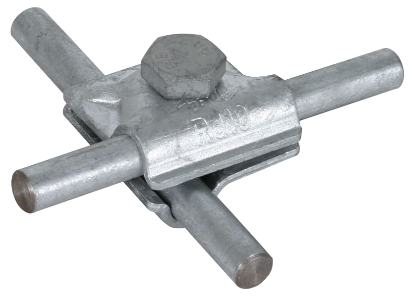 Morsetto di collegamento multiuso secondo CEI EN 62561-1, per l'applicazione universale per connessioni a croce, a "T"e parallele di conduttori tondi. Esecuzione componibile con vite a testa esagonale e filetto nella parte inferiore.