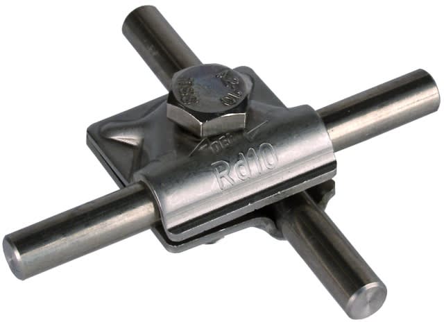 Morsetto di collegamento multiuso secondo CEI EN 62561-1, per l'applicazione universale per connessioni a croce, a "T"e parallele di conduttori tondi. Esecuzione componibile con vite a testa esagonale e filetto nella parte inferiore.