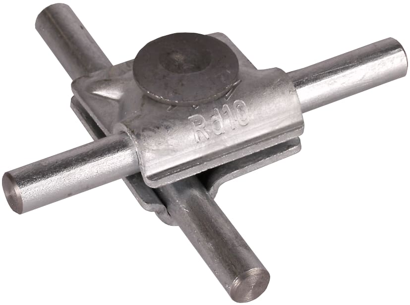 Morsetto di collegamento multiuso secondo CEI EN 62561-1, per l'applicazione universale per connessioni a croce, a "T" e parallele di conduttori tondi. Esecuzione componibile con vite a testa piatta e dotata di antisvitamento.