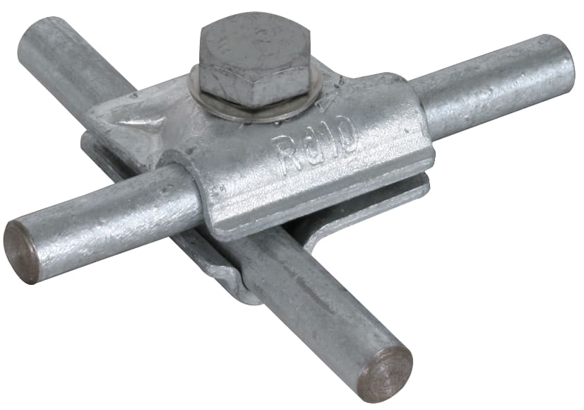 Morsetto di collegamento multiuso secondo CEI EN 62561-1, per l'applicazione universale per connessioni a croce, a "T"e parallele di conduttori tondi. Esecuzione componibile con vite a testa esagonale, grova e filetto nella parte inferiore.