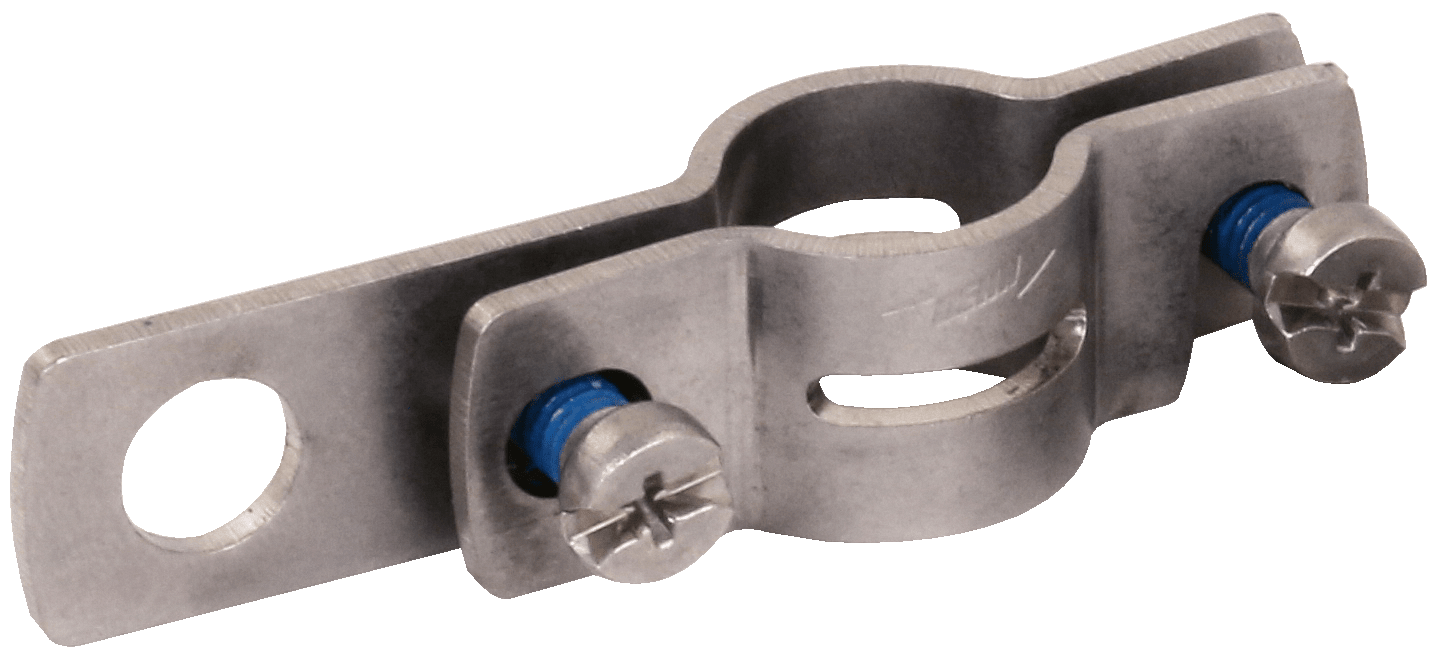 Elemento di connessione per equipotenzialita , per il collegamento della guaina speciale della conduttura HVI light plus all?equipotenzialita. Versione in acciaio inox con foro di collegamento D 11 mm, ad es. per connettori KS.
