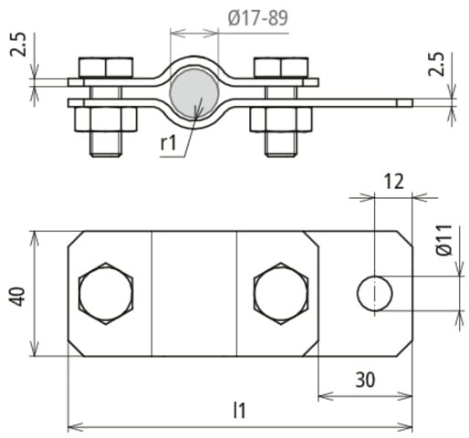 Collare per tubi di messa a terra per protezione dai fulmini secondo la norma CEI-EN 62561-1, per l?integrazione di tubi nei collegamenti equipotenzili di sicurezza e funzionali secondo la norma CEI 64-8 (DIN VDE 0100-410/540) e nell?equipotenzialita antifulmine secondo la norma CEI EN 62305-3 (CEI 81-10/3). Esecuzione INOX con viti M10, connessione per conduttori piatti con viti e dadi M10, per conduttori a sezione tonda 7-10 mm, p. es. connettori KS.