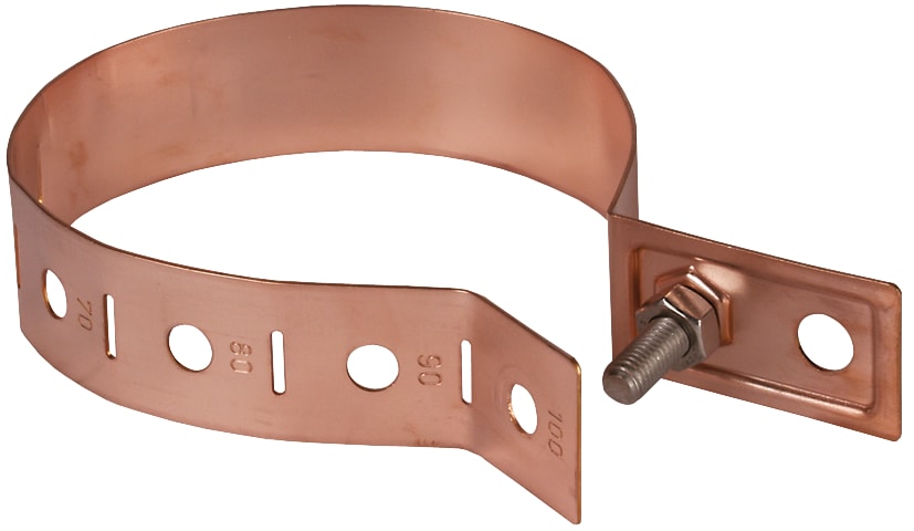 Collare di messa a terra secondo CEI EN 62561-1 per l'integrazione di pluviali nell'equipotenzialità antifulmine secondo CEI EN 62305-3 (CEI 81-10/3). Possibilità di collegamento D11 mm per conduttore tondo p.es. con conettore KS oppure con cavallotto di fissaggio. Esecuzione tipo RV regolabile per diametri diversi di tubo, con marcatura ed ulteriore blocco contro lo svitamento della vite di fissaggio M8, punti di piegatura e di taglio predisposti.