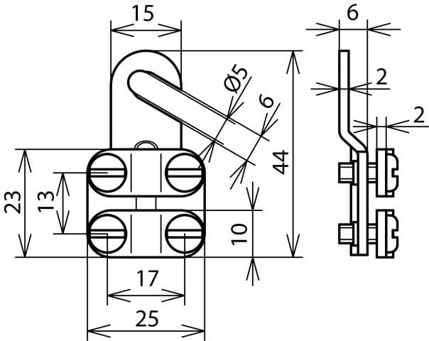 Capicorda di messa a terra secondo VG 96933-14 per il montaggio in loco con scarico della trazione integrato (nella seconda parte del morsetto). Esecuzione M5 / M6.