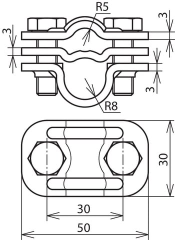 Morsetto di sezionamento UNI secondo CEI EN 62561-1 per il collegamento della calata con l’adduzione a terra. Esecuzione con piastra intermedia per aste di adduzione a terra Td 16 mm, forma costruttiva stretta.
