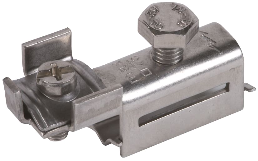 Fascetta di messa a terra per l'integrazione di tubazioni nell'equipotenzialità di sicurezza e funzione secondo CEI 64-8 (DIN VDE 0100-410/540). Esecuzione con morsetto separato, in combinazione con nastro per fascette 25 x 0,3 mm, sezione di collegamento 4-25 mm².