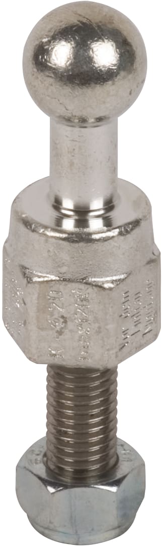 Punto fisso a sfera, esecuzione diritta, con codolo filettato e dado come punto di collegamento di fase e di terra conforme a DIN VDE 0683-100 (EN/IEC 61230) su conduttori e impianti di terra. Alta resistenza meccanica per mezzo di filettatura rullata. Per questo adatto anche come capocorda e collegamento su barre di corrente secondo la norma DIN 43673-1.