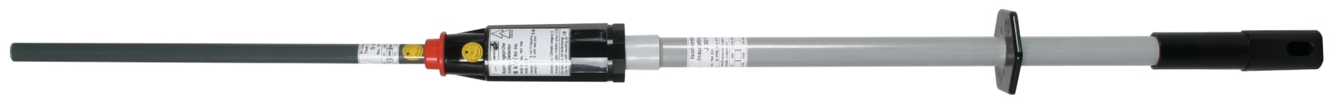 Rivelatore di tensione capacitivo di tipo composto secondo EN/IEC 61243-1 (CEI 11-45, DIN VDE 0682-411) per la verifica omnipolare di assenza tensione della zona di lavoro secondo EN 50110-1 (DIN VDE 0105-100) in impianti elettrici. Categoria "S" per impianti di commutazione e linee aeree. Utilizzabile anche durante precipitazioni atmosferiche. Con indicazione ottica ed acustica e dispositivo di auto-verifica.