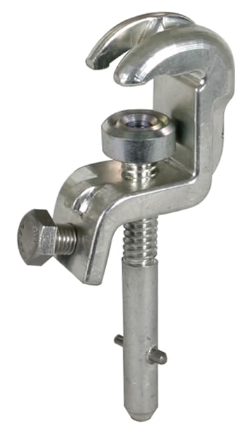 Pinza universale, codolo a baionetta come elemento di connessione di fase o di terra secondo la norma DIN VDE 0683-100 (EN/IEC 61230) per punti fissi a sfera, punti fissi a T, conduttori piatti e tondi per la dotazione di corde di messa a terra e in cortocircuito. Con dispositivo antirotazione, esecuzione PK1.