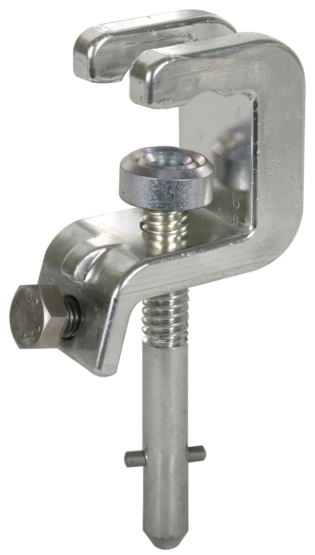 Pinza universale, codolo a baionetta come elemento di connessione di fase o di terra secondo la norma DIN VDE 0683-100 (EN/IEC 61230) per punti fissi a sfera, punti fissi a T, conduttori piatti e tondi per la dotazione di corde di messa a terra e in cortocircuito. Con dispositivo antirotazione, esecuzione PK1.