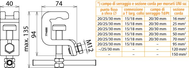 Pinza di terra universale con barretta di rotazione come elemento di connessione sul lato terra secondo la norma EN/IEC 61230 (DIN VDE 0683-100) per punti fissi a sfera, punti fissi a T, conduttori piatti e tondi per l'equipaggiamento sul lato terra di corde di terra e di corto circuito. Con dispositivo antirotazione, esecuzione PK1.