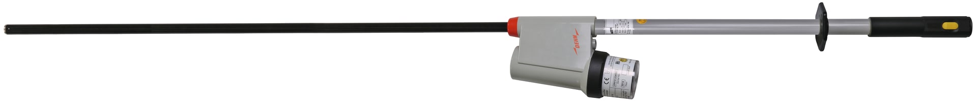 Rivelatore di tensione capacitivo PHE4 secondo DIN VDE 0682-411 (EN/IEC 61243-1) per stabilire la mancanza di tensione su tutti i poli sul posto di lavoro secondo DIN VDE 0105-100 (EN 50110-1) in impianti elettrici. Categoria "S" per quadri elettrici e linee aeree. Utilizzabile anche con precipitazioni atmosferiche. Con indicazione ottica e acustica e dispositivo di autoverfica di tutte le parti attive compreso il puntale di prova. Poca lunghezza di trasporto tramite fioretto isolante svitabile con giunto a innesto per prolungamento dell'impugnatura.