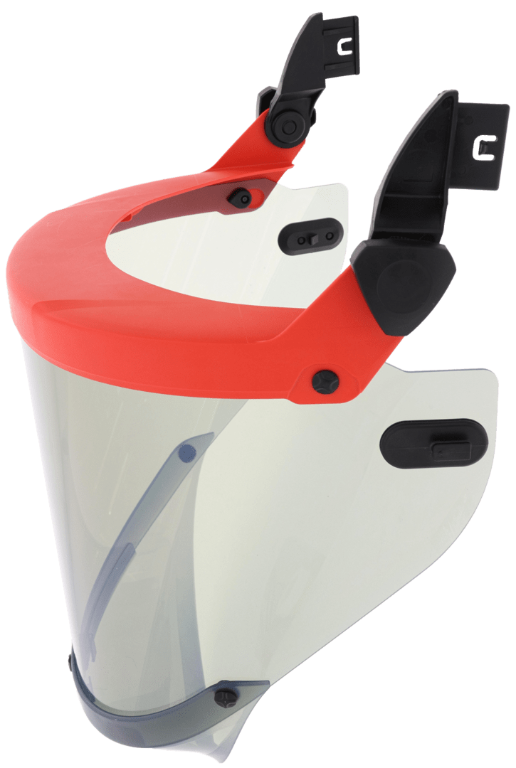 Visiera protettiva DEHNcare APS T AS con clip e sottomento trasparente, provata con arco elettrico, per lavori di manutenzione ordinaria e straordinaria su impianti elettrici. Adatta per il supporto sull'elmetto protettivo per elettricista ESH U S. Certificata secondo i requisiti del regolamento DPI (UE) 2016/425 per la distribuzione dei dispositivi di protezione individuale. Confortevole da indossare. Elevato grado di protezione dovuto alla nuova protezione attiva. Ottima visibilita tramite rivestimentoantiappannante ed elevata trasparenza (classe di trasmissione della luce: 2). Provata con arco elettrico in accordo al Principio di Prova GS-ET-29: classe 2 con 423 kJ / m2 (prescrizione tedesca) e ad ASTM F2178: 14 cal / cm2.