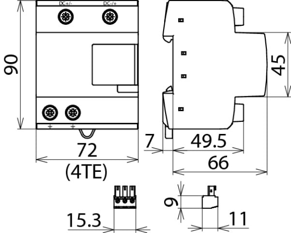 Scaricatore combinato multipolare Tipo 1 + Tipo 2 per circuiti elettrici di generatori fotovoltaici DEHNcombo YPV, Tipo 1 + Tipo 2 secondo EN 61643-31 con unita di manovra in corrente continua a 3 stadi. Disconnettore e dispositivo di corto circuito combinato. Per la protezione da sovratensioni di inverter fotovoltaici, anche in caso di fulminazione diretta. Da utilizzare secondo la norma IEC 60364-7-712:2002-05 (realizzazione di impianti fotovoltaici).