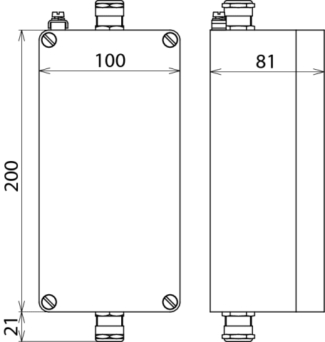 Custodia in alluminio, installazione a parete IP65, per il montaggio di apparecchi modulari. Con 2 pressacavi in ottone M20. Larghezza160/altezza100/profondità85mm