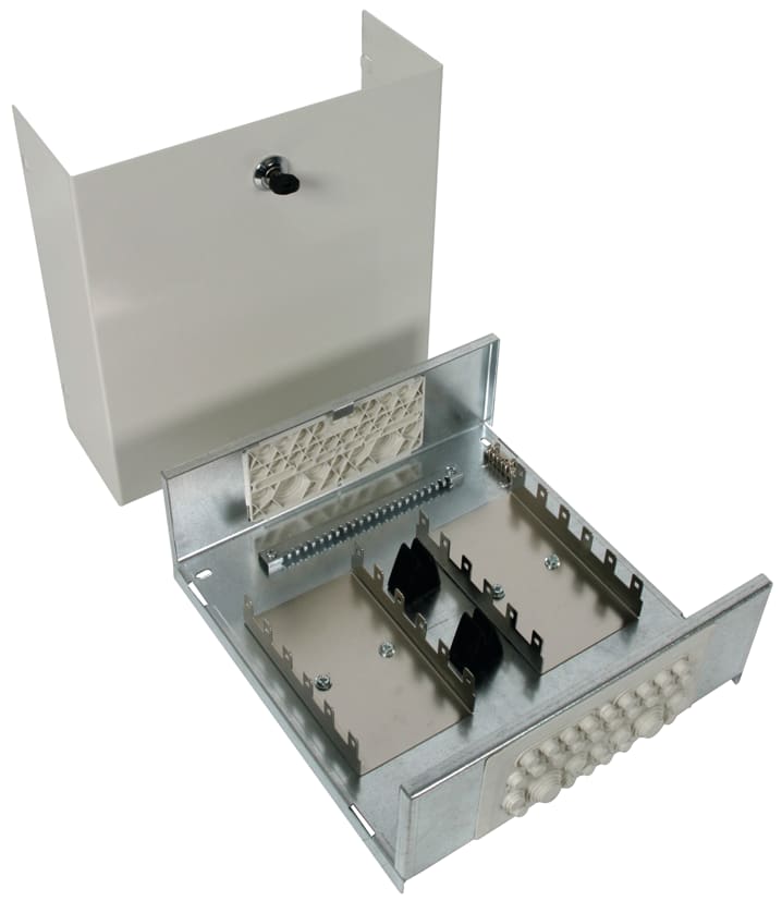 DPG LSA e un sistema di custodie prefabbricate con staffa di montaggio LSA e offre un?installazione ottimale di scaricatori e sistema di connessione per schermi (molla di contatto).