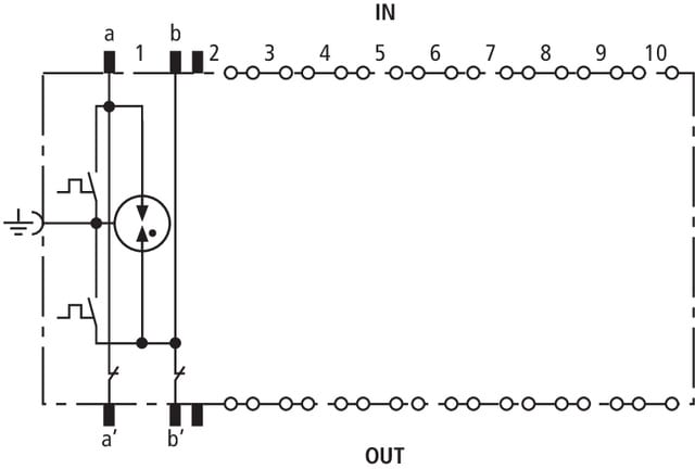 Blocco di protezione da corrente di fulmine DRL 10 coppie per quasi tutte le applicazioni e ampliabile con spine DRL allo scaricatore combinato. I contatti di sezionamento integrati consentono con protezione inserita prove, misure e patching. Gli scaricatori tripolari a gas hanno una funzione fail-safe con indicazione ottica di guasto.