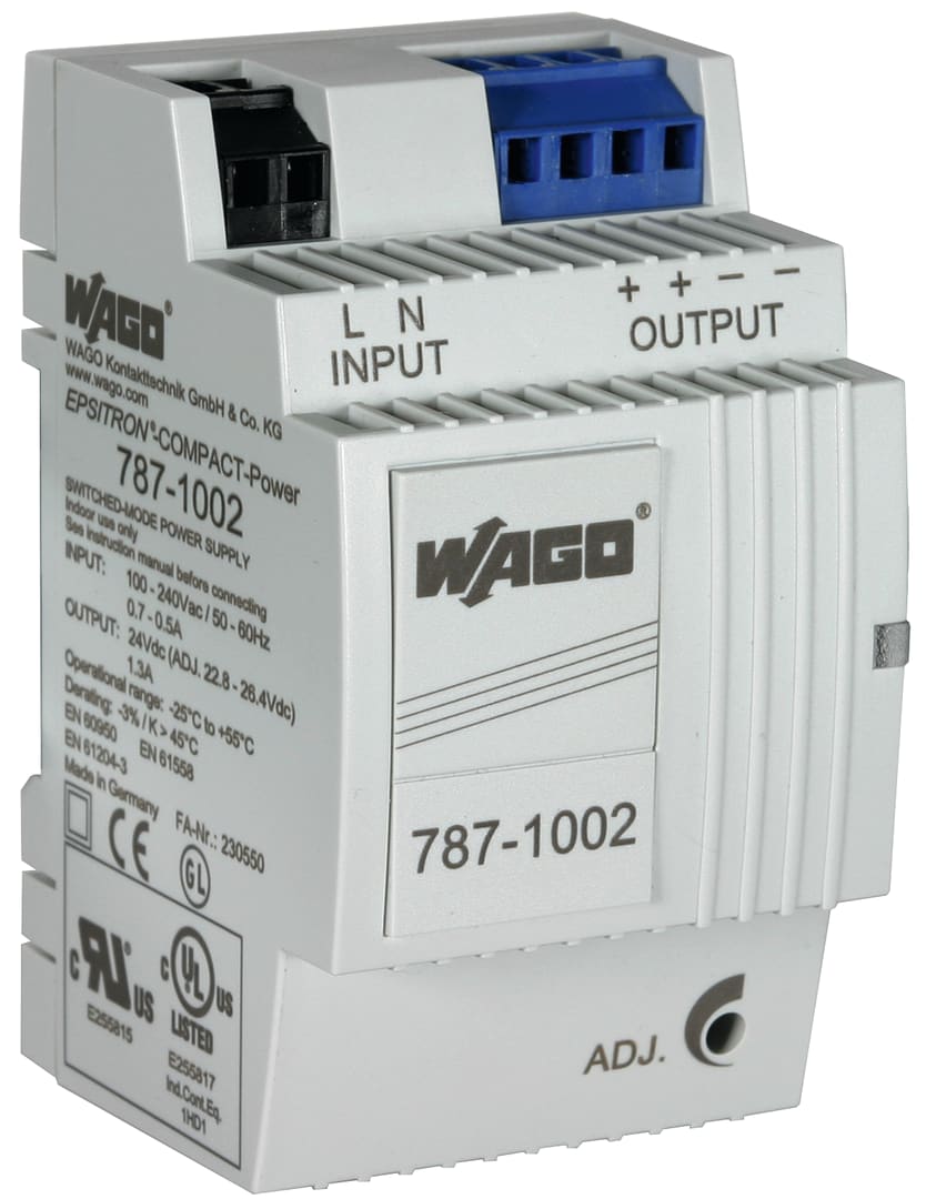 Alimentazione efficiente di corrente, in involucro modulare, con ingresso monofase per il funzionamento in diverse reti di alimentazione. L'indicatore di funzionamento anteriore segnala la disponibilita della tensione in uscita. Con un'alimentazione di corrente si possono mettere in funzionamento fino a 10 dispositivi di controllo DCR MCM XT o DRC SCM XT come applicazione singola o fino a 15 dispositivi di controllo DRC MCM XT come applicazione multipla.