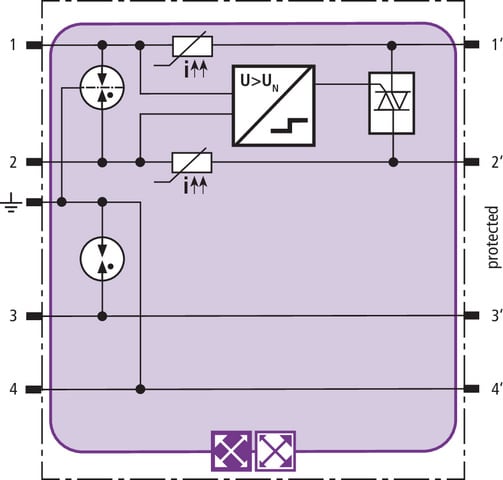 Modulo di protezione combinato in tecnologia actiVsense con LifeCheck, esecuzione stretta, per la protezione di 1 coppia di fili con possibilità di messa a terra diretta oppure indiretta dello schermo.