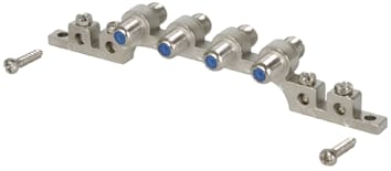 Blocco di messa a terra tetrapolare con prese tipo F, per l'equipotenzialita di schermi del cavo SAT oppure scaricatori per corrente di fulmine DGA GF TV.