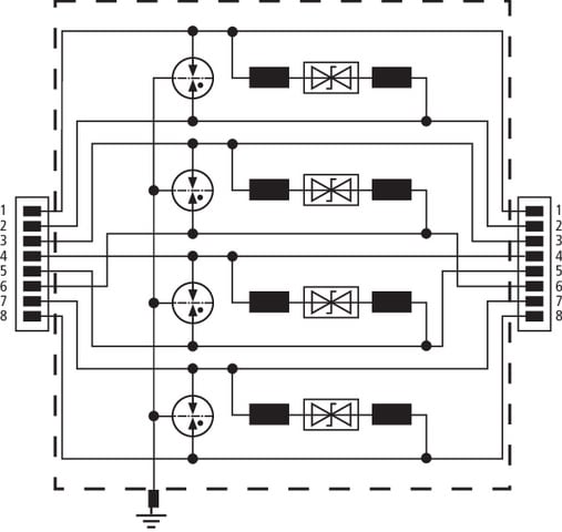 Limitatore di sovratensione universale per Ethernet, Power over Ethernet (conforme a IEEE 802.3 fino a PoE++ / 4PPoE) e applicazioni simili in sistemi di cablaggio universale della CAT 6 oppure secondo Classe EA fino a 500 MHz. Completamente schermato per il montaggio su guida profilata.