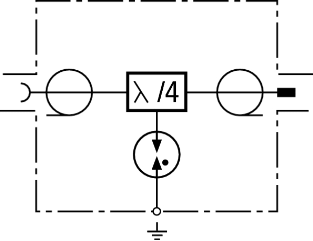 Scaricatore adatto anche per alimentazione remota, con tecnologia combinata di spinterometro e lambda/4 per applicazioni in multifrequenza (sistemi multicarrier), vista la minima intermodulazione passiva. Banda particolarmente larga per tutti i servizi 4+3G e LTE.