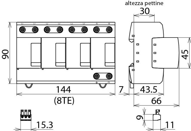 DEHN ITALIA SPA - DEH951315 SPD T1+2 3P+N A CARTUCCIA CON CONTATTO