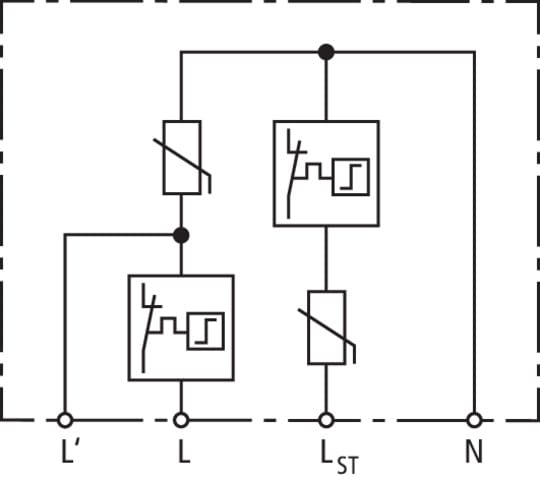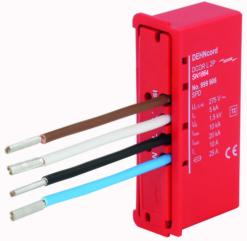 Limitatore di sovratensione bipolare DEHNcord L Tipo 2 secondo CEI EN 61643-11, in costruzione compatta per l'impiego in cassette di trasmissione cavi di luci LED per pali con interruzione del circuito di corrente di carico in caso di errore e protezionedella fase di comando. Per l'impiego nel concetto di protezione da fulminazione a zone ai passaggi 0B ? 1 e superiori.