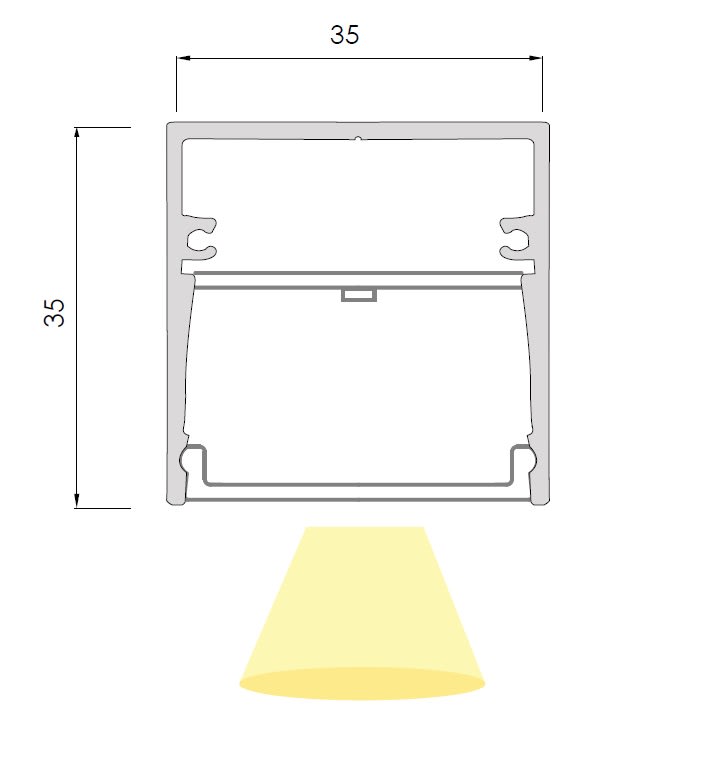 Zer035 costruito in estruso di alluminio si avvale della tecnologia degli schermi in policarbonato per diffondere la luce per mezzo di LED al top, per qualità, resa cromatica, lumen emessi, ed accurata selezione della Temperatura colore, scelta in base al progetto scenografico che vogliamo ottenere. ZERO 35 offre una gamma di finiture e di accessori, i tagli lineari e a 45 o su MISURA, rendono realizzabile qualsiasi progetto sia esso da incasso a parete, plafone o sospensione. Materiale: alluminio e policarbonato. Cover: opale/satinata. LED e alimentatori non inclusi. Finitura: Bianco. Lunghezza: 1cm.