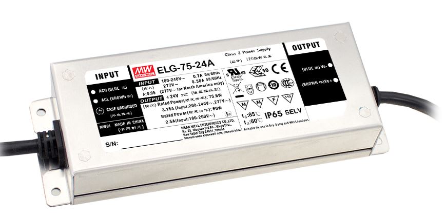 Driver LED AC / DC tensione costante 75W 100-295Vac 24Vdc 3.15A funzione DALI IP67.
