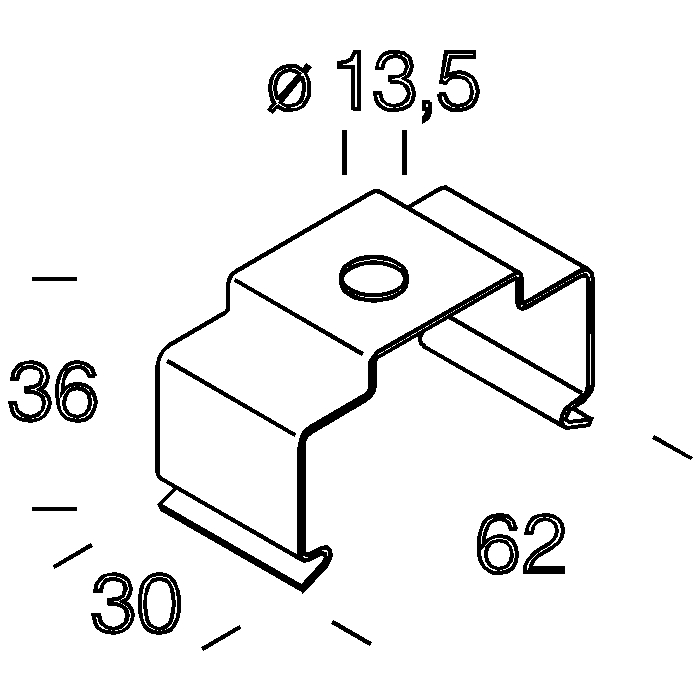 Attacco plafone/sosp. in acciaio. Per l'installazione direttamente a plafone o a sospensione con tiges. Utilizzarne almeno 2 per canale.
