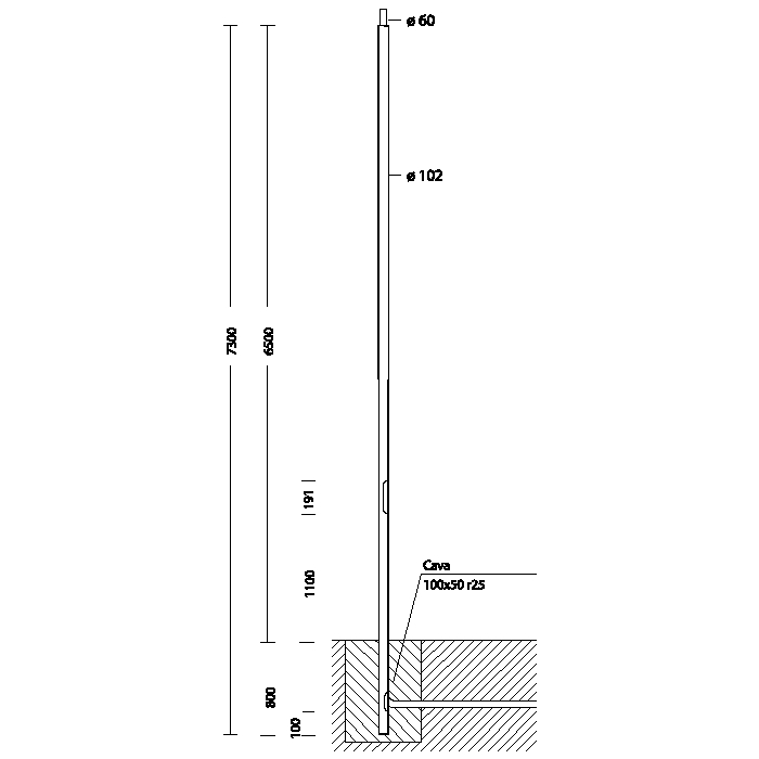 Palo in acciaio ø 102, colore argento. Con finestra d'ispezione in alluminio pressofuso (191x55mm), completo di 2 portafusibile di protezione, 2 fusibili da 16A , morsettiera asportabile a 4 poli. Predisposto con foro per ingresso cavo di alimentazione. Riduzione Ø60 mm. Per la versione con base è necessario acquistare 4 tirafondi da interrare, bulloneria e tappi. Si consiglia l'utilizzo con gli accessori 465/467 e con gli articoli Agadir, Monza e Metropolis.