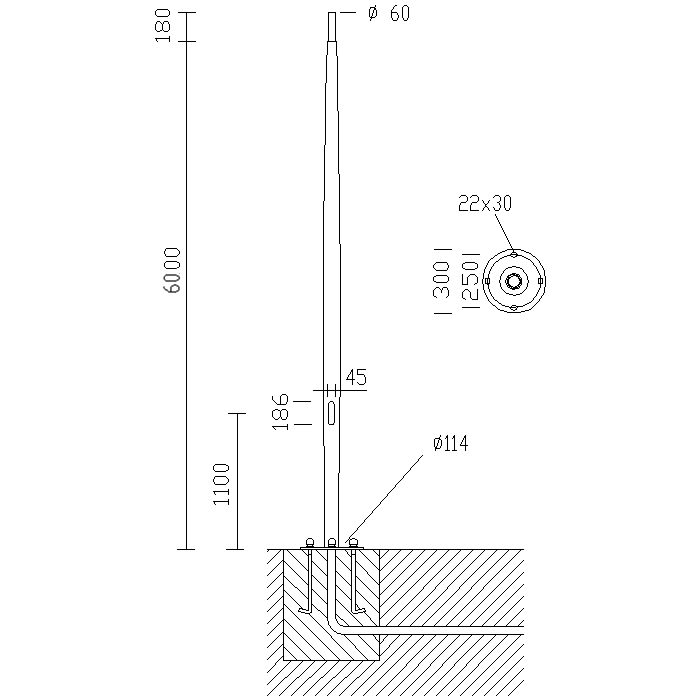 Diametro della cima del palo - 60 mm