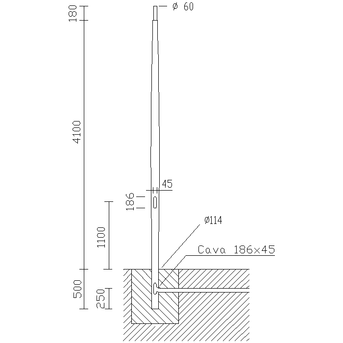 Pali in acciaio di sezione semicilindrica. Con finestre d’ispezione, completa di 2 portafusibili di protezione, 2 fusibili da 16A, morsettiera asportabile. Per la versione con base è necessario acquistare 4 tirafondi da interrare completi di bulloneria. Il suo design risulta adatto all’installazione in arredo urbano. Predisposto con foro per ingresso cavo di alimentazione, con attacco testa palo ø60. N.B.: La possibilità di accoppiare una composizione al palo è subordinata alla verifica della resistenza alla spinta del vento, nelle zone del territorio previste dalla norma D.M.14/01/2008. Secondo le ipotesi di carico previste dalle norme EN 40-3-1. Grafite.