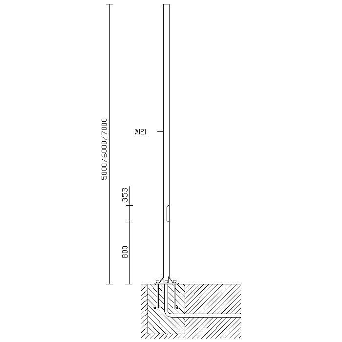 Diametro della cima del palo - 121 mm