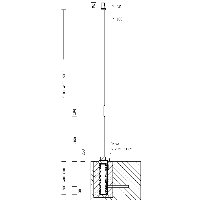 Palo in alluminio estruso rigato, anodizzato per elettrocolore a base di sali di stagno spessore 15/20µ., colore nero oppure ossidato naturale e verniciato grafite. Con finestra d'ispezione in alluminio pressofuso (186x45mm), completo di 2 portafusibile di protezione, 2 fusibili da 16A, morsettiera asportabile a 4 poli/3 vie = 10 mmq derivazione 2,5 mmq. Predisposto con foro per ingresso cavo di alimentazione. Riduzione in pressofusione di alluminio Ø60 mm. Per la versione con base è necessario acquistare 4 tirafondi da interrare, bulloneria e tappi. Di serie in classe di isolamento II. Attenzione quando si utilizzano apparecchi in classe di isolamento I prevedere le connessioni per la messa a terra.