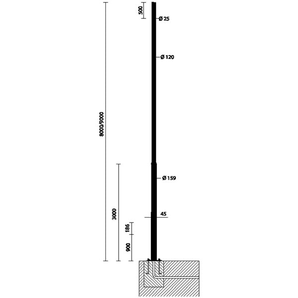 Diametro della cima del palo - 25 mm