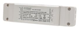 Corpo in policarbonato termoresistente. Interruttore termico con autoripristino. Protezione contro corto circuito: circuito elettronico con ripristino automatico. Fattore di potenza: 0.99. Morsetti a vite. Frequenza di funzionamento: 50-60Hz. Secondario:11.5V. Efficienza: 95%. Temperatura di funzionamento: -17°C / 40°C. Certificati dal TÜV: Radio Disturbi EN 55015; Armoniche EN 61000-3-2 EN 61000-3-3; Sicurezza EN 61347; Immunità EN61547