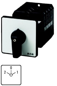Invertitore, Assortimento: apparecchio di comando, Rilevatore tipo: T5B, con leva nera e targhetta frontale, Contatti: 5, Grado di protezione: Frontale IP65, Forma costruttiva: a comando rinviato, Angolo di manovra: 45 °, Caratteristica di commutazione: permanente, con posizione 0, targhetta frontale: 2-0-1, Potenza nominale d'impiego AC-23A, 50 - 60 Hz 400 V: P = 30 kW, Corrente nominale ininterrotta: Iu = 63 A, 3 Unità costruttiva/e, Conformità alle norme: IEC/EN 60947, VDE 0660, IEC/EN 60204, CSA, UL,Sezionatori di potenza secondo IEC/EN 60947-3