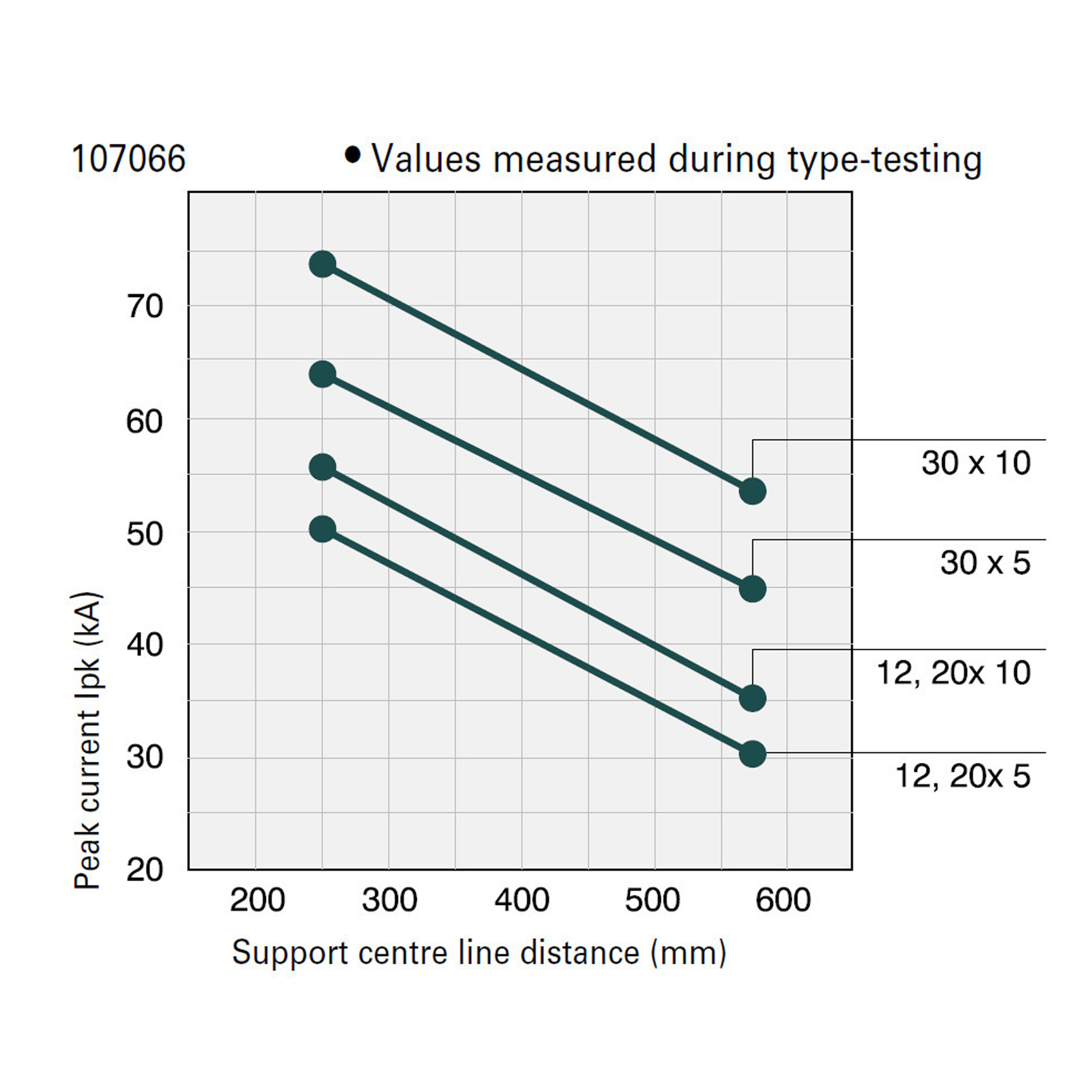 Supporto per sbarra collettrice IEC, sistema 60-mm, corrente nominale di esercizio Ie=630A, poli= 3, utilizzabile per 12x5/10, 15x5/10, 20x5/10, 25x5/10 e 30x5/10, con cursore per adattarsi alle rispettive dimensioni delle sbarre, con blocco vite all'interno, resistente a temperature fino a 120 °C, resistenza del binario CTI 200, autoestinguente secondo UL 94, RAL 7035, termoplastico, senza silicone, senza cloro, privo di alogeni, distanza tra i supporti per sistema a sbarre corrispondenti al diagramma di resistenza al cortocircuito