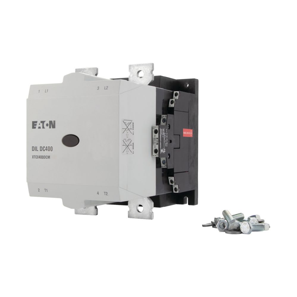 Contattore di potenza DC, dispositivo per i mercati mondiali: UL/CSA, CCC, dimensioni compatte, serie Comfort con l’opzione di azionamento diretto tramite PLC, con circuito soppressore integrato nell’elettronica di comando, conforme alla norma IEC/EN 60947, con bobina ad ampia gamma di tensione AC/DC, a controllo elettronico, potenza di presa e di tenuta ridotta al minimo, compatibilità elettromagnetica migliorata, collegamenti dei cavi di comando con morsetti a vite, 2 contatti ausiliari NA e 2 NC montati, sezionamento sicuro conforme a EN 61140, contatti contrapposti interbloccati, montaggio a vite, utilizzabile fino a 1000 V, grado di protezione IP00