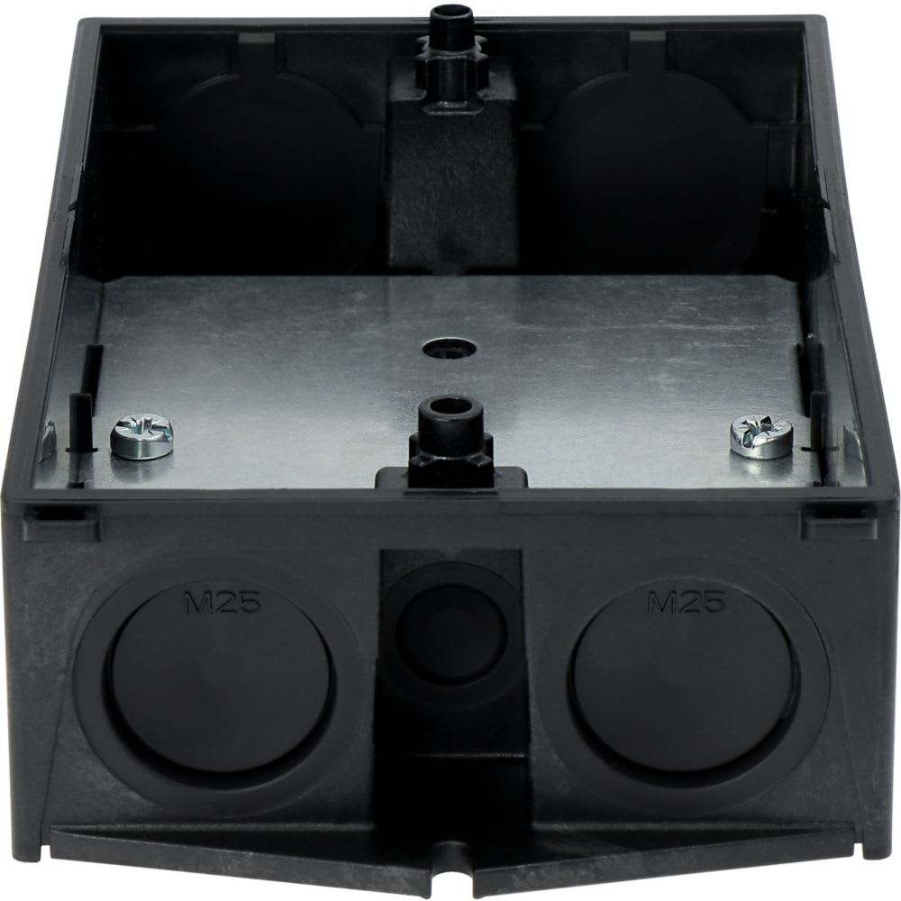 Custodia in materiale isolante, Con piastra di montaggio, Assortimento: Custodia compatta CI-K, custodia vuota, Apparecchio singolo, Grado di protezione: Frontale IP65, IP65, per entrata cavi nella tecnica a perforazione, Materiale: policarbonato rinforzato con fibra di vetro, Colore: Base della custodia RAL 9005, nero, Parte superiore della custodia grigio chiaro RAL 7035, Descrizione: setti sfondabili, metrici, nella parte superiore, inferiore e parete retro, Entrata cavi di comando, Indicatori luminosi L‐… montabili nel passaggio cavi sfondabile della base M20/M25, Entrata cavi: membrana passante del cavo, Dimensioni Larghezza: 100 mm, Altezza: 160 mm, Profondità: 145 mm, Profondità di montaggio con piastra di montaggio: 124 mm, Conformità alle norme:IEC/EN 60529, DIN EN 62208