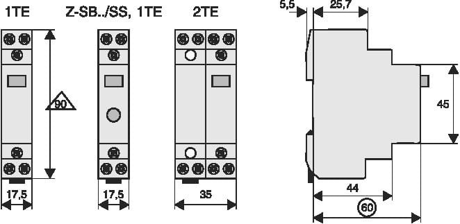 Relè di impulsi, tensione di comando 240 V 50 Hz, funzione: 2 NA, corrente nominale di esercizio a 250 V CA secondo IEC/EN 60669-2-2: 16A, passo modulare 45 mm, larghezza di montaggio 1 SU (17,5 mm), montaggio su guida DIN, sezione del terminale 0,5-10 mm² solido e flessibile / 0,5-6 mm² flessibile con puntalino