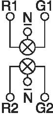 Doppia luce, tensione nominale di esercizio LED 24 V AC/DC, colore LED rosso+verde, luminosità 15 mcd, dissipazione 2 W/LED, norma di frequenza di intermittenza. 2 Hz, passo modulare 45 mm, larghezza di montaggio 1 SU (17,5 mm), montaggio su guida DIN, sezione dei morsetti 1-10 mm², tipo conforme alla norma IEC/EN 60669, VDE 0632