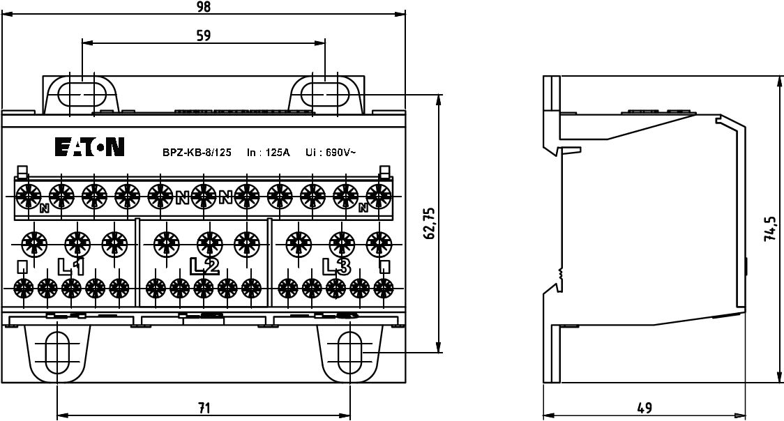 EATON - EAO289968 BPZ-KB-8/125 RIPARTITORE 125A 4P