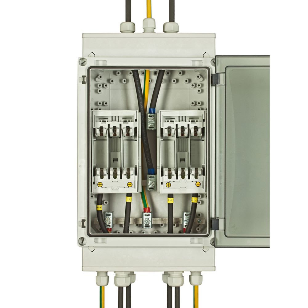 Alimentazione centralizzata Eaton ZB-S, modulo di distribuzione batteria per montaggio track inclusi 2 pezzi tappo a vite E18 e 2 pezzi inserto fusibile D02 da 25 A