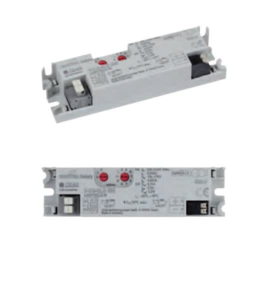 V-CG-SLS 500. Bassi costi d‘esercizio grazie a una ridotta dissipazione in stand-by < 0.5 W. Dimensioni ridotte sulla base dei moderni alimentatori T5 (A x L: 21 x 30 mm) montaggio facilitato in apparecchi di illuminazione più piccoli. Senza terminale dimessa a terra. Per l‘utilizzo di apparecchi di illum. con classe di protezione I o II. Varie possibilità di fissaggio per posizioni di montaggio diverse (orizzontale o verticale di lato). Nessun errore di installazione grazie al collegamento in rete protetto contro l‘inversione di polarità. Tempi e costi di ispezione ridotti grazie alle tecnologie CEWA GUARD e S+ Verifica di funzionamento automatica per un massimo di 20 apparecchi per circuito elettrico. Costi di installazione ridotti grazie alla tecnologia STAR. Funzionamento misto liberamente programmabile delle modalità di attivazione per singolo apparecchio in un circuito elettrico. Riduzione degli interventi d‘installazione in quanto non è necessaria alcuna linea dati aggiuntiva per gli apparecchi di illuminazione. Tensione di collegamento 220 - 240 V, 50/60 Hz / 176 - 275 Vcc. Carico collegabile 2 x LED (corrente nominale 500 mA), collegamento in serie. Corrente di uscita (max.) 3.2 W. Tipo di montaggio Per il montaggio in apparecchi di illuminazione con classe di protezione I o II. Grado di protezione IP20. Dimensioni in mm (A x L x P) 21 x 110 x 30. Materiale dell‘involucro / Colore Policarbonato antincendio / Grigio.