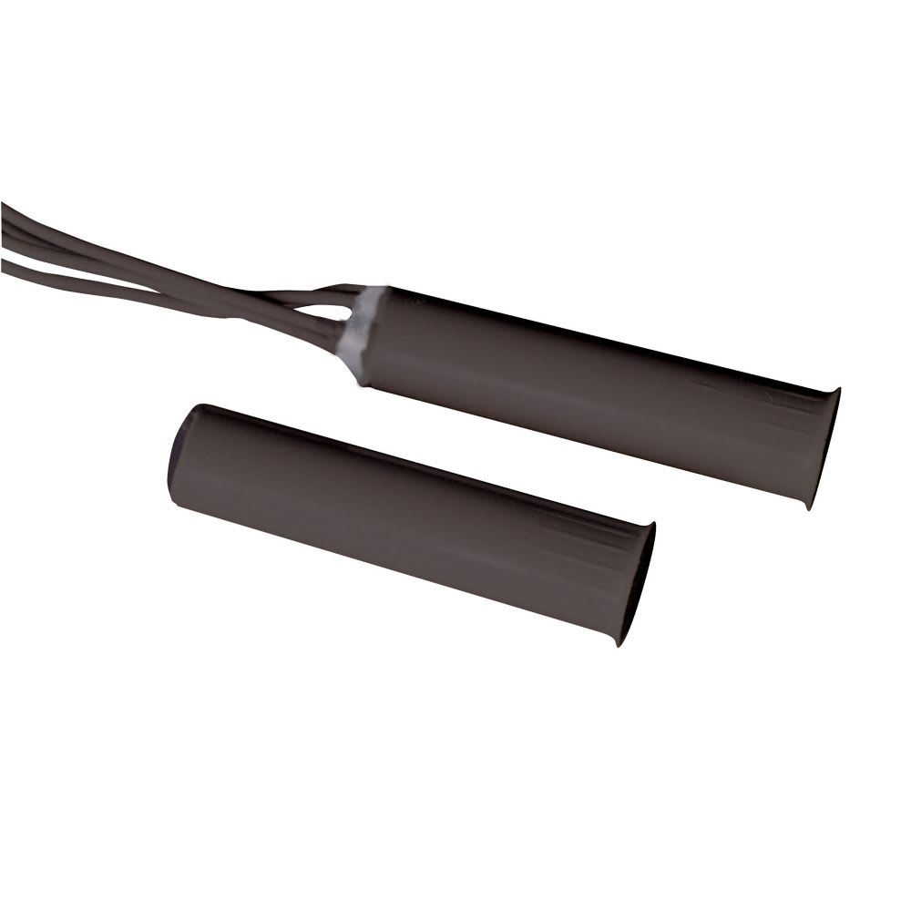 Contatto magnetico in termoplastico per montaggio ad incasso negli infissi. Adatto per il montaggio su infissi di alluminio, legno, PVC e in genere infissi di materiale non ferromagnetico (il montaggio su infissi in ferro riduce sensibilmente la distanzadi intervento).